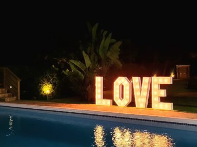 We have all the letters of the alphabet and all the numbers for rent. With these we create the bright backdrop you want for your event.